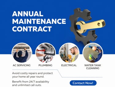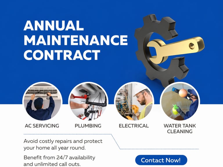 We provide comprehensive AMC (Annual Maintenance Contract) services covering all aspects of facility management and general maintenance. Our services include routine inspections, preventive maintenance, and timely repairs to ensure smooth and efficient operations. Our skilled team is equipped to handle electrical, plumbing, HVAC, and other maintenance requirements, delivering reliable solutions with minimal downtime.
