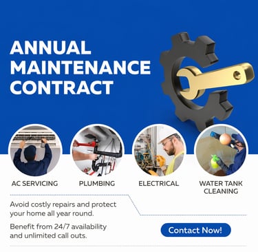 We provide comprehensive AMC (Annual Maintenance Contract) services covering all aspects of facility management and general maintenance. Our services include routine inspections, preventive maintenance, and timely repairs to ensure smooth and efficient operations. Our skilled team is equipped to handle electrical, plumbing, HVAC, and other maintenance requirements, delivering reliable solutions with minimal downtime.